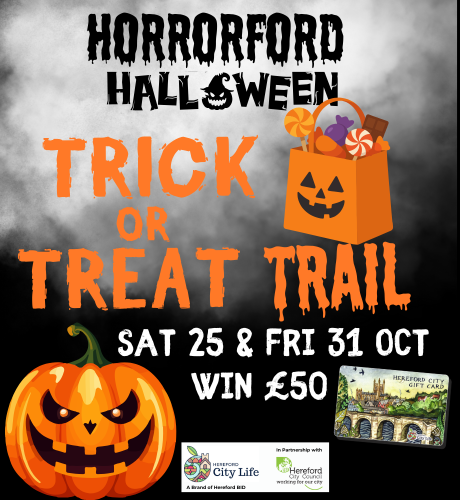 - Trick and Treat Trail Win £50 main prize and treats at all trail locations*. Trail runs on Saturday 25th and Friday 31st October.
